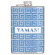 Blue Ancient Greek Key Meander Pattern Hip Flask
