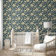 This peel-and-stick wallpaper features an elegant floral pattern with intricate details of large blooming flowers and delicate foliage in soft beige tones against a deep navy blue background. The timeless botanical design adds a touch of sophistication and charm, making it perfect for transforming living rooms, bedrooms, or accent walls. Easy to apply and remove, this self-adhesive wallpaper is ideal for renters and home decorators seeking a quick and stylish upgrade. A versatile choice for both modern and classic interiors.