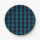 Blue and Black Buffalo Check Plaid Pattern Paper Plate