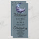 The back of the program thoughtfully lists your cherished wedding party, recognizing their roles in your special day. The text within the program is elegantly presented in classic black and grey, using a simple block font for clarity and readability. However, the words "Welcome," "Ceremony," and "Wedding Party" are intricately crafted in a decorative script font, adding a touch of grace and sophistication to the overall design.