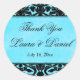 This 1.5" diameter blue and black damask thank you sticker/envelope seal matches the invitation and other items shown below. There is also matching envelopes and postage to allow you to mail out a beautifully coordinated thank you card. You can change the text to say whatever you want, and you can also change the sticker size to be 3 inches in diameter, which would be ideal to adorn your wedding/party favours with. If you require any other matching items in this design, please email me your request to niteowlstudio@gmail.com.