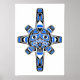 Blue and Black Haida Sun Mask on White Poster