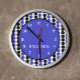 Design features blue circle in the middle of the wall clock with black border. Inside of the circle is name that is created as a template so customer can personalize it. The Circle is surrounded by black and blue dots of the same size. Start to decorate the room with this cute personalized clock.