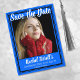 Send out this Blue and Black Save the Date Graduation Announcement Postcard to all your friends and family. Personalize with your favourite photo, name and party date. Show off your school spirit with this feminine announcement.