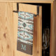 This is an attractive kitchen towel with a tribal motif pattern. The symbols are in light teal blue and brown, and placed on a light tan background. A matching brown border at the bottom holds your monogram or other text. Perfect for a southwestern decor kitchen.