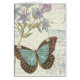 © Pela Studio / Wild Apple. A blue and brown butterfly with a purple flower. There is a butterfly silhouette in the background as well as French words.