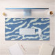 Blue and cream Modern Abstract Wavy Lines Pattern Desk Mat