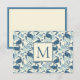This coastal inspired note card features a pattern of sea turtles and coral in shades of blue and cream. personalize the matching monogram with your choice of initial.