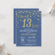 13th Birthday Invitation with Blue and Gold Glitter Diamond Background. Gold Confetti. Kids Birthday. Teen Teenage Boy or Girl Birthday. For further customization, please click the "Customize it" button and use our design tool to modify this template.