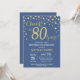Blue and Gold 80th Birthday Diamond Invitation