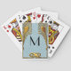 An elegant, Art Deco set of playing cards in blue, with an ornamental gold Art Deco design set on a powder blue background. The monogram can be easily personalized with your own family's monogram.
