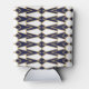 This can cooler has an art deco design of triangles and diamonds that look like bowties in blue and gold.