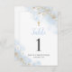 Baptism Table Numbers | Blue watercolour with faux gold glitter details and faux gold religious cross design. A modern and elegant Christening or Baptism design for your little boy's special day. Matching invitation and other designs available.