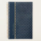 Handsome monthly planner done in a navy blue and gold tone diamond pattern. A navy blue band, down the left front of the planner has a gold edge accent and custom text ready to personalize. Great for work, home or school.