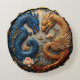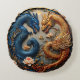 Blue and Gold Dragons in Yin Yang Design Round Pillow