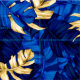 Blue and Gold Exotic Tropical Forest Pattern Fabric