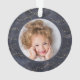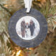 This modern Christmas ornament features a rich, dark blue background with elegant faux gold fairy lights, and two of your favourite personal photos. Add your family name in gold coloured text.