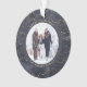 Blue and Gold Fairy Lights | Two Family Photos Ornament