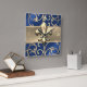 Blue and Gold Filigree Swirls Fleur de Lis Square Wall Clock