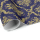 Blue And Gold Floral Damasks Lace Pattern Wrapping Paper