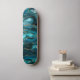 Blue and gold glitter agate skateboard. Modern abstract digital art.