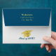 Blue and Gold graduation party. Customizable envelope for a grad party for him or her. The back of the envelope is decorated with a gold graduation cap and graduation year to personalize. Fun graduation party invites envelopes for high school or college graduations.