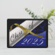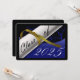 Blue and gold graduation card with a diploma and year of graduation on it. The back is a black background with gold lettering for the graduation party invitations.