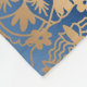 A cozy fleece blanket featuring a beautiful and elegant blue and gold floral mandala pattern design.