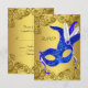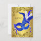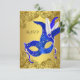 Beautiful blue feather mask royal blue and gold masquerade party RSVP. This beautiful gold and blue masquerade party RSVP is easily customized for your event by adding your details in the font style and wording of your choice.