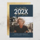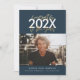 Blue and gold modern script graduation photo announcement. Modern gold effect script text. Part of a collection.