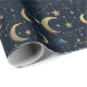 Blue and gold moon and stars wrapping paper