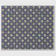 Blue and gold nautical pattern wrapping paper featuring seashells and pearls in a lattice pattern.