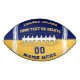 Blue and Gold Personalized Footballs or Your Team Colors. 4 Text Boxes for you to type in each Football Player's Name, Jersey Number and Your Special Messages or Delete. Awesome Senior Football Player Gifts and Personalized Football Team Gifts. You, or CALL Designer Linda: 239-949-9090 to CHANGE the Gold and Blue Football Text and Background COLORS, the white sports football stripes to any color combination. I can create less expensive gifts for football players to moderately priced football gift ideas.