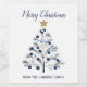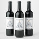 Blue and Gold Personalized Merry Christmas Trees Wine Label