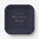 Paper plate featuring a blue and gold striped wallpaper background with an elegant script and serif font in which your personalized information is written. Check out our store for more items from this collection.