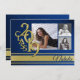 Blue and Gold Varsity 2019 Graduation Three Photo Invitation