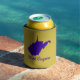 The shape of the state of West Virginia in blue and the name West Virginia in blue text on an old gold background.
