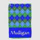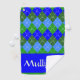 Blue and Green Argyle White Stitching Personalized Golf Towel