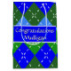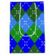 Personalized blue and green argyle gift bag. Eclectic Grandpa and Jazz Revival are looks both trending in 2024 and argyle fits perfectly into that stylish trend. Blue and green argyle design, blending a classic preppy diamond pattern with lively shades of blue and green. Personalized gift for your mom, dad, sister, brother, cousin, uncle, aunt, grandpa, nana, golf buddy, office mate.