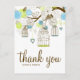 Customizable invitation featuring illustration of blue and green birdcages and variety of flowers with two love birds perched on a tree with dangling heart string.