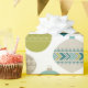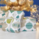 Trendy Christmas pattern featuring assorted ornaments in shades of teal blue, green and beige with aztec tribal accents.