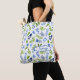 This delightful garden pattern features blue and green florals. There are an assortment of leaves, flowers and ferns on both sides of the tote bag. The front of this tote can be customized.