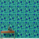 Light Blue and mint green rectangles and squares on green background. Simple and colorful pattern