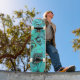 Blue and green marble abstract effect board. Bright trendy skateboard. Customised design.