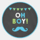 Blue and Green Moustache Little Man Cupcake Topper Classic Round Sticker