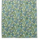 A shower curtain with a classic paisley design in blues and greens with a touch of gold.