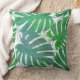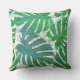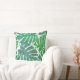Blue and green palm tropical leaves throw pillow