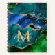 This notebook features an elegant and glamourous blue and green agate marble background with faux gold glitter accents. The monogram combines handwritten script and modern sans serif fonts for a classy and sophisticated look. This will make the ideal gift as it can be customized with a name and initial. The sequins and distressed texture creates the perfect blend of chic and grunge.