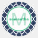 Blue and Green Quatrefoil Monogram Classic Round Sticker