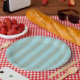 blue and green stripped plates